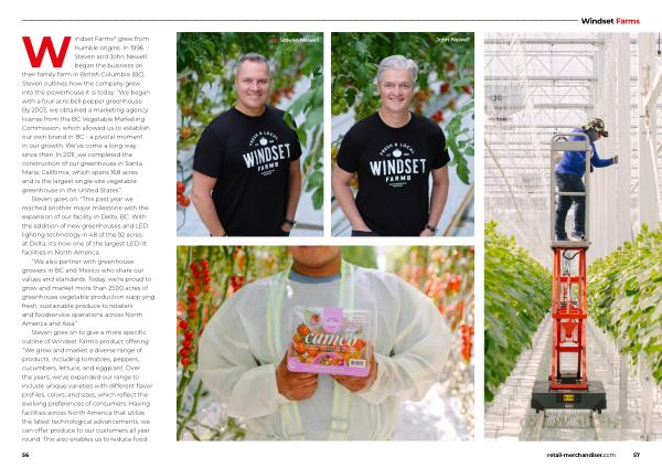 Steven goes on to give a more specific outline of Windset Farm ’ s product offering : “ We grow and market a diverse range of products , including tomatoes , peppers , cucumbers , lettuce , and eggplant . Over the years , we ’ ve expanded our range to include unique varieties with different flavor profiles , colors , and sizes , which reflect the evolving preferences of consumers . Having facilities across North America that utilize the latest technological advancements , we can offer produce to our customers all year round . This also enables us to reduce food