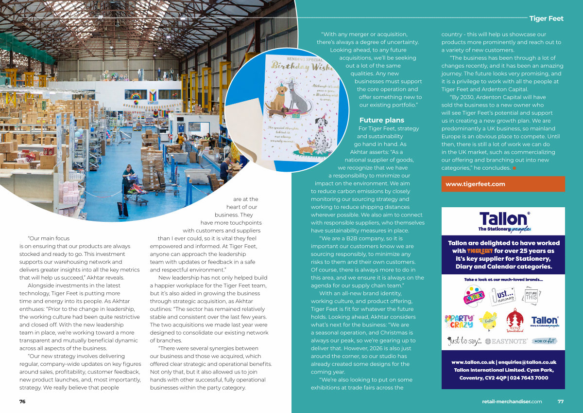 New leadership has not only helped build a happier workplace for the Tiger Feet team, but it’ s also aided in growing the business through strategic acquisition, as Akhtar outlines:“ The sector has remained relatively stable and consistent over the last few years. The two acquisitions we made last year were designed to consolidate our existing network of branches.