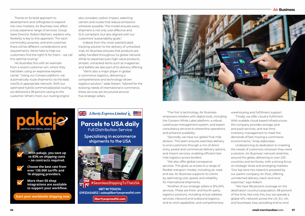 Indeed, from the most sophisticated tracking solution to the delivery of untracked mail, Air Business ensures that products are safely handled throughout its global network. While its expertise suits high-value products, simpler, untracked items such as magazines and leaflets are also part of its delivery offering.