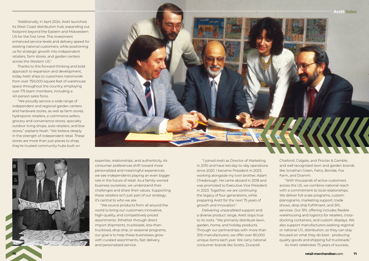 Thanks to this forward thinking and bold approach to expansion and development, today Arett ships to customers nationwide from over 750,000 square feet of warehouse space throughout the country, employing over 175 team members, including a 40-person sales force.