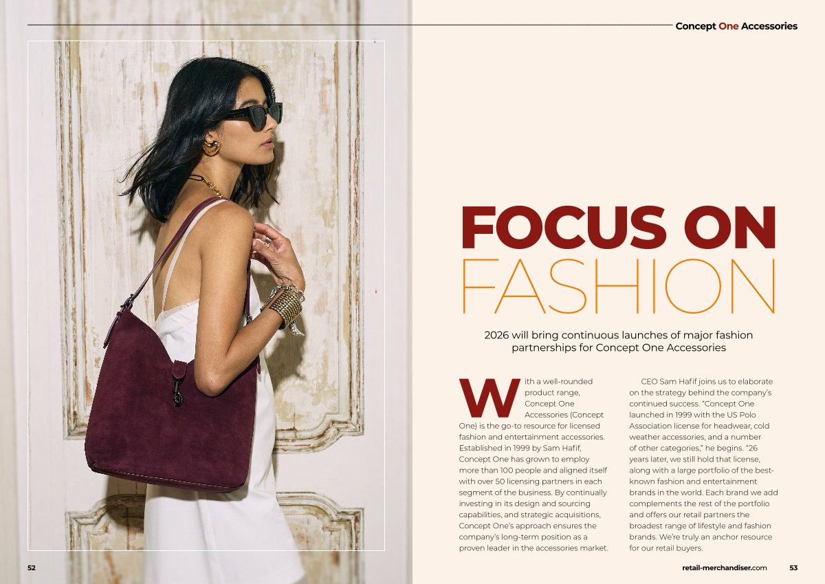 CEO Sam Hafif joins us to elaborate on the strategy behind the company’ s continued success.“ Concept One launched in 1999 with the US Polo Association license for headwear, cold weather accessories, and a number of other categories,” he begins.“ 26 years later, we still hold that license, along with a large portfolio of the bestknown fashion and entertainment brands in the world. Each brand we add complements the rest of the portfolio and offers our retail partners the broadest range of lifestyle and fashion brands. We’ re truly an anchor resource for our retail buyers.