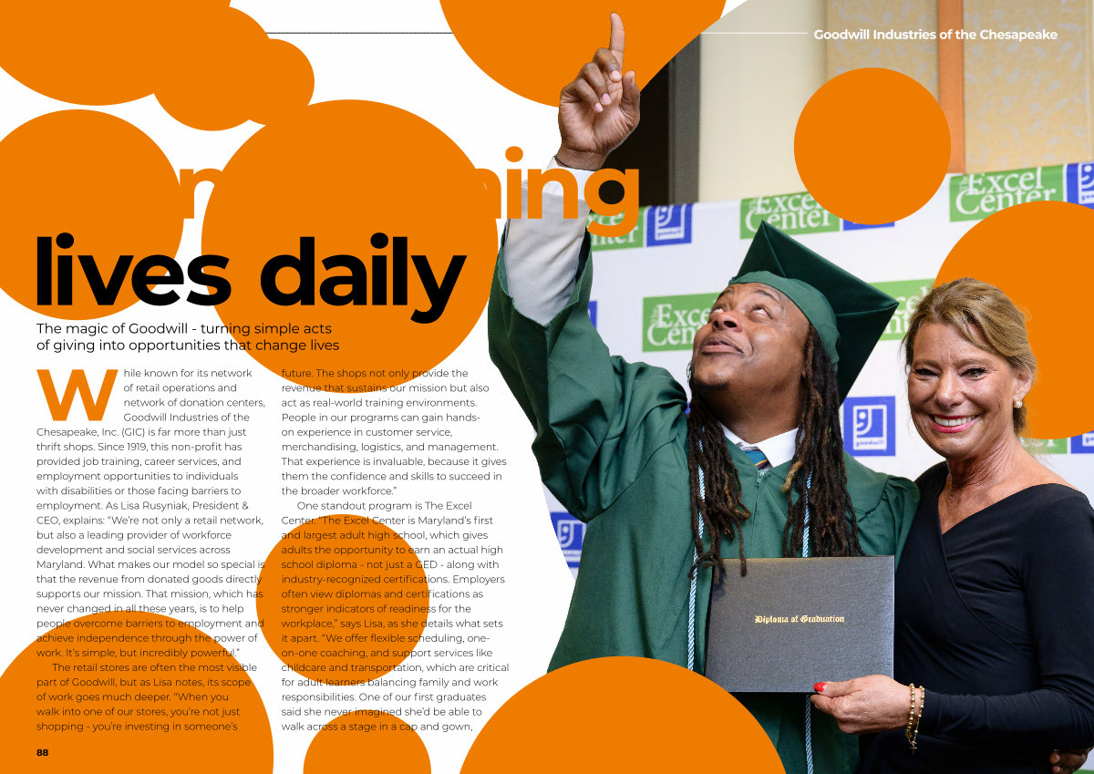 While known for its network of retail operations and network of donation centers, Goodwill Industries of the Chesapeake, Inc.( GIC) is far more than just thrift shops. Since 1919, this non-profit has provided job training, career services, and employment opportunities to individuals with disabilities or those facing barriers to employment. As Lisa Rusyniak, President & CEO, explains:“ We’ re not only a retail network, but also a leading provider of workforce development and social services across Maryland. What makes our model so special is that the revenue from donated goods directly supports our mission. That mission, which has never changed in all these years, is to help people overcome barriers to employment and achieve independence through the power of work. It’ s simple, but incredibly powerful.”